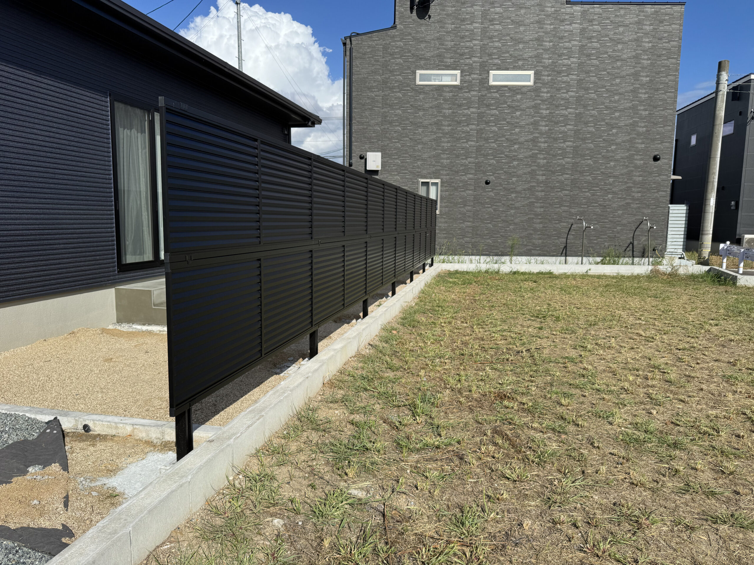 黒の目隠しフェンスが住まいを凛と引き締め、外からの視線を完全にシャットアウト。安心感に包まれた空間へ生まれ変わりました。