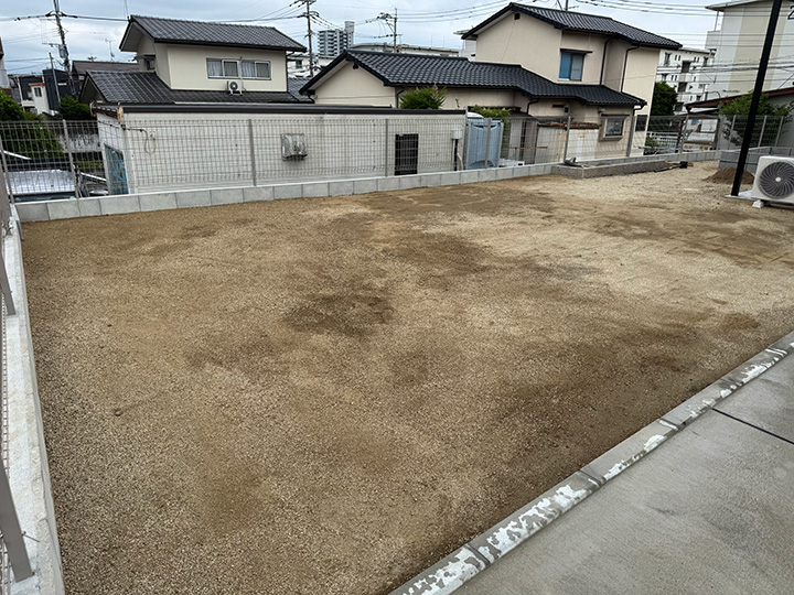 広い真砂土のスペースでしたが、夏場の雑草や雨の日の泥跳ねが悩みの種となっていました。
