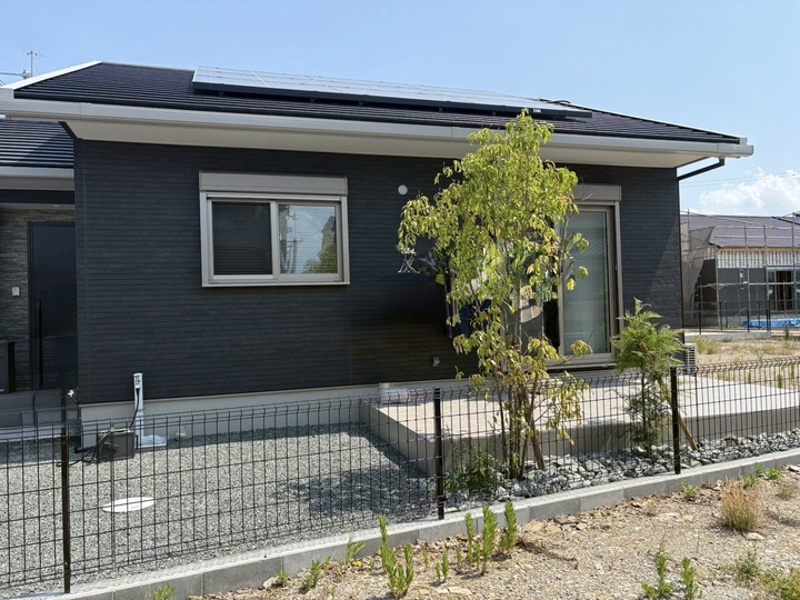 メッシュフェンスと砂利で清潔感を出しつつ、ロックガーデンにてシンボルツリーを配置。手入れのしやすさと「緑のある暮らし」を同時に叶えました。