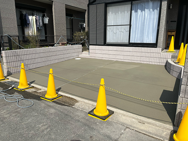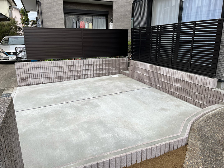 広々とした駐車場が完成。オシャレな化粧ブロックとフェンスを添え、お住まい全体の印象もパッと明るく清潔感あふれるものになりました。