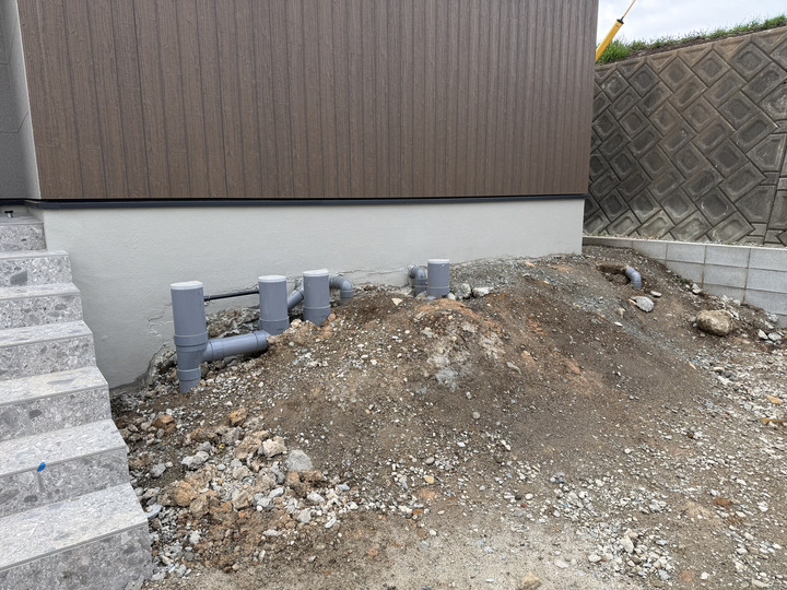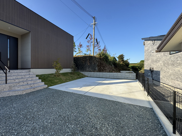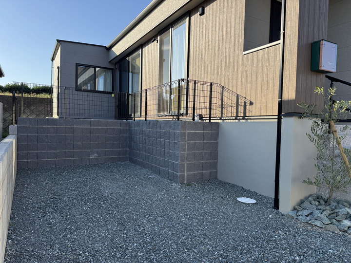 一番のポイントは、高低差のあるエントランス周りの処理です。使い勝手の良いコンクリートアプローチと、メンテナンス性に優れた砕石敷きを組み合わせることで、広々とした清潔感のある空間を実現しました。